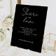 Herzlich willkommen in unserem Black Modern Script Wedding Hashtag Pedestal Sign Design, wo moderne Minimalismus auf die Kunst der Kalligraphie trifft. Diese kuratierte Ästhetik bringt einen Hauch von Raffinesse zu Ihrem besonderen Tag - mit einer Drehung von boho, lässigem Charme. Die Kombination aus einfacher Typografie und einem stilvollen Script-Schriftart verleiht Ihrer Hochzeit eine einzigartige Persönlichkeit. Dieses klassische Design bietet einen zeitlosen, polierten Look, der perfekt für Frühjahr-, Sommer-, Herbst- oder Winterhochzeiten ist. Eine schlichte Palette von schwarzen Kulissen und weißem Text schafft die perfekte neutrale Kulisse für Ihre Feier. Machen Sie Ihre Hochzeit wirklich elegant mit unserer schönen, modernen Skriptkollektion. Wie bei allen unseren Designs, wenn Sie Fragen oder besondere Wünsche haben, frag einfach.