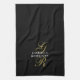 Personalized elegant refined chic kitchen towel, customizable with monogram, initial letters and name. Classy timeless premium look black background, elegant gold calligraphy script handwritten initial letters, and stylish white typography for the name. Beautiful and useful, for you or as a thoughtful custom gift for her, under 20 dollars. Elevate your kitchen and dining decor with this unique linen. Suitable as housewarming, new homeowner or perfect host kitchen essentials gift. Even to stage a house for sale and make it more attractive for potential buyers.