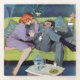 Künstler: Lynn Buckham | Eine Frau in einem lila Kleid und ein Mann im Anzug sitzend auf einem grünen Sofa.