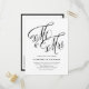 Einladende Gäste zu Ihren Hochzeitsfeiern mit unserer individuell gestaltbaren Hochzeitseinladung Postkarte. Es zeigt Herrn und Frau in rustikaler Kalligraphie. Diese schwarz-weiße Hochzeitseinladung Postkarte ist perfekt für jedes Hochzeitsthema oder jede Hochzeitszeit. Ob Frühjahr, Rustikal oder klassische Hochzeit - diese kalligraphische Hochzeitseinladung auf der Postkarte erfasst den Kern Ihrer Liebe. Die individuell anpassbare rsvp-Karte ermöglicht es Ihnen, Ihre Einladung mit Ihren Namen, Hochzeitstag, Veranstaltungsdetails und anderen speziellen Nachrichten zu personalisieren. Matching-Elemente sind verfügbar.