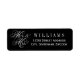 Elegante "Mr. and Mrs." Rücksendeadressen-Aufkleber sind perfekt für ein frisch verheiratetes Paar. Mit elegantem Kalligraphieskript und benutzerdefiniertem Text können Sie Ihren Nachnamen und Ihre Adresse personalisieren. Die Farbe des schwarzen Hintergrunds und der weiße, benutzerdefinierte Text können angepasst werden.