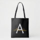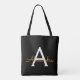 Schwarz und Gold Elegant Fügen Sie Ihren eigenen Namen Monogram Book Bag. Diese Büchertasche kann auf Ihren Vor- und Vornamen angepasst werden und als Geschenk für Weihnachten, Geburtstag, Brautparty oder Hochzeit.