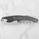 Mit diesem eleganten, personalisierten Korkenschneckenflaschenöffner mit elegantem schwarzen Ober-Finish und dem elegant geschriebenen Namen stärken Sie Ihre Barware. Dieses Geschenk ist für Langlebigkeit und Bequemlichkeit konzipiert und eignet sich hervorragend zum Geburtstag, Trauzeugen, zum Vatertag oder für alle, die Wein mit einer Touch von Klasse genießen. Lassen Sie sich von jedem unkorrekten Augenblick maßgeschneidert fühlen.
