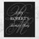 Das ist ein Weinetikett für Bachelor-Partys, die Bräutigam und Nachnamen hinzufügen. Das Label hat schwarzen Onyx Hintergrund mit weißem, elegantem Skript. Das Design ist schlicht, klassisch und elegant.