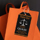 Diese moderne schwarz-orange Graduiertenparty mit Geschenkartikeln für das benutzerdefinierte Recht der Schule bietet klassische Typografie für eine Klasse von 2024 Absolventen. Passen Sie mit Ihrem geschlossen Jahr unter den weißen Maßstäben der Justiz für diese großen personalisierten Anwälte oder Anwälte Gefallen Tags.
