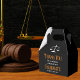 Diese moderne Graduiertenparty mit Schwarz-Orange-Gunst-Box mit dem Namen des Uni-Absolventen für die Klasse des Jahres 2024. Passen Sie mit Ihrer Universität unter den Maßstäben der Gerechtigkeit mit einem Abschluss Dankeschön Nachricht für einen neuen Anwalt.