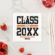 Unterhaltung, schwarze und orangefarbene Schulfarben für diese Abschlussfeier-Servietten