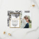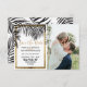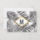Elegante, schicke und moderne tropische Imitate am Strand druckten goldene Kontur und schwarze Blätter an der Palmenfront auf Weiß mit Imitaten, die auf Goldsequin-Typografie gedruckt wurden, die Hochzeitkarte Rett-the-Date. Dieses klassische und raffinierte Design ist perfekt für das trendige und stilvolle Ehepaar. Personalisieren Sie Ihre eigene Nachricht auf der Vorderseite sowie ein individuelles Monogramm auf der Rückseite. Das gesamte Foto-Druckdesign.