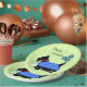 Genießen Sie ein Party, ein Meeting oder eine andere Veranstaltung mit diesen lustigen und skurrilen "Party Scottie" Einwegpapier-Tellern. Mit anderen Worten, einem Geburtstag oder einer anderen Veranstaltung oder Feier, oder personalisieren Sie mit dem Namen Ihres Hundes. Ihre Hunde-Liebe strahlt mit diesen einzigartigen Tellern aus, die mit einem niedlichen schwarzen Terrier-Hund gekleidet sind. Dieses skurrile schwarze Scottie Terrier trägt einen blauen Pullover-Mantel mit tonalen blauen Sternen und einem roten Kragen. Hinter der Scottie befindet sich ein türkisgrüner und limitierter Ball, und an seiner Vorderpfote befindet sich ein großer, weißer Hundeknochen. Der Hintergrund ist ein limitiertes, tonales Streifenmuster, das zu einem stilvollen, trendigen und individuell gestalteten Einwegpapier-Party-Teller für die Dekoration führt. Drei türkisblaue aquamarine Blumen stehen über dem Hund. Dieser niedliche, kuschelige und trendige Hund ist eine originelle Kunstkunst von Phyllis Dobbs und wird das Herz eines Hundeliebhabers schmelzen. Dieses Scottie ist eine von 6 Scotties und alle sind vollständig anpassbar, um es zu Ihrem eigenen zu machen! Koordinieren Sie mit den entsprechenden Produkten.