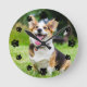 Black Paw Prints Add Your Pet Foto Runde Wanduhr