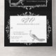 Einladend zu Ihrer Hochzeit mit einem Black Peacock Blüh All in One Wedding Invite. Das einladende Design besticht durch einen eleganten Pfau, der mit Schnörkeln mit einer perforierten Antwortkarte geschmückt ist. Personalisieren Sie mit dem Bräutigam und den Namen der Braut zusammen mit dem Hochzeitstag und der Lage. Mit diesem Design sind auch weitere Hochzeitswaren erhältlich.
