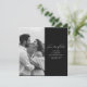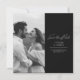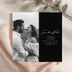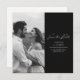 This casual chic wedding save the date card in square format, features a prominent photo and contemporary set of modern fonts against a jet black background at the front, while the back remains white. Additional text area at the back is provided for further personalization. The design exude a modern minimalist aesthetic with a casual elegant flair.