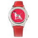 Kinderuhr aus Edelstahl mit rotem Lederarmband