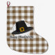 Black Pilgrim Hat auf Brown Kariert - Erntedank Großer Weihnachtsstrumpf