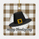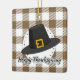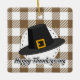 Black Pilgrim Hat auf Brown Kariert - Erntedank Keramikornament