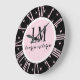 Black & Pink Bow Monogram Große Wanduhr