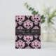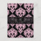 Black & Pink Damask Chic Wedding Save the Date Postcard. Anpassen mit jedem Text.