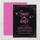 Rosa Einladungen zum 77. Geburtstag Save the Date schwarzer Glam-schicker Glitzer funkeln