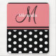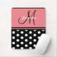 Black Pink White Polka Dots Monogram Script Mousepad