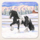 Black Pinto Piebald Sinti und Roma Vanner Entwurf PferdeTrotting im Schnee.