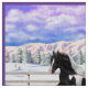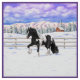 Black Pinto Piebald Sinti und Roma Vanner Entwurf PferdeTrotting im Schnee.