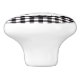 This ceramic cabinet knob is shown in a Black, White plaid with a wolf print.