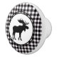 This ceramic cabinet knob is shown in a Black, White plaid with a moose print.