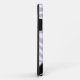 Stilvoll und gürtlich iPhone 5 Case entworfen mit lila-weißen Zebrastreifen, weißen Polka Punkte über schwarz, und personalisiert mit Ihrem Namen oder benutzerdefinierten Text diagonal in Weiß über schwarz, bequeme Lesbarkeit, ob Ihr iPhone 5 wird vertikal oder horizontal gehalten.