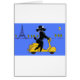 Mein Gemälde von einem niedlichen kleinen schwarzen Poodle Reiten einer hellen gelben Vespa Roller und der Eiffelturm im Hintergrund.