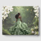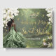 Personalize this enchanting Sweet 16 birthday guest book easily and quickly. Simply click the Edit Using Design Tools button to further edit the text, change font styles and font colors. Featuring a black girl dressed in a sage green dress, a frog prince, beautiful trailing white floral and an enchanted forest and pond background. The girl, crown, little butterflies and frog are movable, resizable, multipliable and removable. Customize it to suit your occasion. For a seamless and coordinated look, explore our range of matching items available in-store. (c) Somerset Fine Paperie.