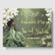 Personalize this enchanting Sweet 16 birthday real foil guest book easily and quickly. Simply click the Edit Using Design Tools button to further edit the text, change font styles and font colors. Featuring a black girl dressed in a sage green dress, a frog prince, beautiful trailing white floral and an enchanted forest and pond background. The girl, crown, little butterflies and frog are movable, resizable, multipliable and removable. Customize it to suit your occasion. For a seamless and coordinated look, explore our range of matching items available in-store. (c) Somerset Fine Paperie.