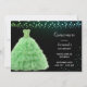 Überraschen Sie alle Ihre Gäste mit diesem magischen, limitierten, grünen, Prinzessin-Design für die süße fünfzehn Ehren. Diamant-Glitz-Overlay auf dem Kleid, und Glitzer streuen in Ecken, unter Saitenlicht auf schwarzem Hintergrund.