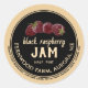 Stilisierte schwarze Himbeeren auf schwarz mit Kraftrahmen; Datum und Zutaten