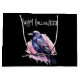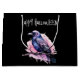 Geschenktasche mit einem Bild einer schwarzen Krähe mit lila rosa Flügeln. Ein rosa Aquarell-Spritzer hinter diesem mystischen Vogel.