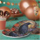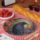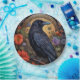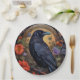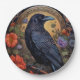 Papier Teller mit einer schwarzen Krähe auf einem Zweig, umgeben von roten Blume. Cooles gotisches Flair.