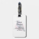 Gepäckanhänger mit einem Bild einer schwarzen Krähe mit lila rosa Flügeln. Ein rosa Aquarell-Spritzer hinter diesem mystischen Vogel.