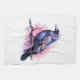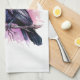 Küchentücher mit einem Bild einer schwarzen Krähe mit lila rosa Flügeln. Ein rosa Aquarell-Spritzer hinter diesem mystischen Vogel.