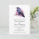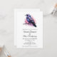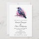 Eine Hochzeitseinladung mit einem Bild einer schwarzen Krähe mit lila rosa Flügeln. Ein rosa Aquarell-Spritzer hinter diesem mystischen Vogel.