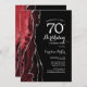 Schwarz Rot und Weiß agate 70. Geburtstagsfeier Einladung. Elegantes modernes Design mit Aquarellfarben-marmorgeode Hintergrund, Imitats Glitzer Silber und Typografie Skript-Schriftart. Die trendige Einladungskarte eignet sich perfekt für eine stilvolle Damenfeier. Gedruckte Zazzle Einladungen oder Sofortdownload digitalen druckbaren Vorlage.