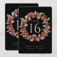Eine schwarze, zweiseitige Weihnachts-/Urlaubskarte mit handbemalten roten Beeren und Eukalyptus, die in einen wunderschönen botanischen Kranz eingefasst ist. Der gesamte Text ist vollständig editierbar. Andere Designs, Tischnummer Produkte und Koordinierungsartikel sind in meinem Shop erhältlich.