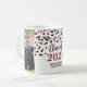 Anpassbare Fotovorlagenklasse 2024 Abschluss Tasse mit rotem und schwarzem Konfetti Muster.