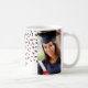 Anpassbare Fotovorlagenklasse 2025 Abschluss Tasse mit schwarz und rot Konfetti Muster.
