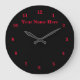 Black Red - Customizable - Add Your Text / Name Große Wanduhr