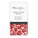 Elegant Wedding bedankt sich bei den Labels in stilvollem Rot, Schwarz und Weiß Vintag und klassisch floraler Damast Muster, die perfekte Ergänzung zu Ihrer Hochzeit, in einer breiten Auswahl an passenden Hochzeitsprodukten. Ideal für Gastgeschenke Hochzeiten oder Hochzeitsweinflaschen.