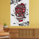 Black & Red Muerte Sugar Skull Poster. Ein großartiges Calveras Sugar Skull Poster in Schwarz und Rot Farben. Ein großer Schädel, der von Julie Farrell illustriert wurde, mit aufwändigen Details, die es zum Pop machen! Umgeben von Rose und Weinreben.