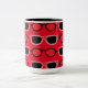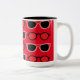 Black Red Sunglasses Muster Zwei-Tone-Kaffee-Tasse von Nisha Prabhu entworfen. Schwarz rote Sonnenbrille auf rotem Hintergrund. Ideal für Sunglass Liebhaber, Brillenliebhaber, Mode und Schönheitsliebhaber.