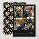 Black Refined Minimalist 5-Photo Collage Wedding Save the Date Card Design with Back Soft Pastel Floral Pattern Background.