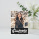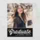 Mit dieser benutzerdefinierbaren Abschluss-Postkarte kündigen Sie Ihren Abschluss an Familie und Freunde an. Es zeigt eine weiße Retro-Skript-Typografie auf einem schwarzen Hintergrund. Personalisieren Sie diese schwarz-weiße Abschluss-Ankündigung Postkarte, indem Sie Ihr Foto, Ihren Namen und Ihren Schulnamen hinzufügen. Diese Foto Abschluss Ankündigung Postkarte ist ideal für High School oder Uni-Abschlüsse.
