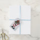 Black Santa Carried Presents Gift Tag Niedlich Black Santa Claus mit Weihnachtsgeschenke auf einem schneebedeckten Hintergrund Abstrakt blaue Wirbel auf der anderen Seite des Anhängers