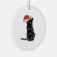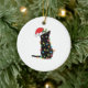 Black Santa Cat Tangled Up In Lights Christmas Keramik Ornament